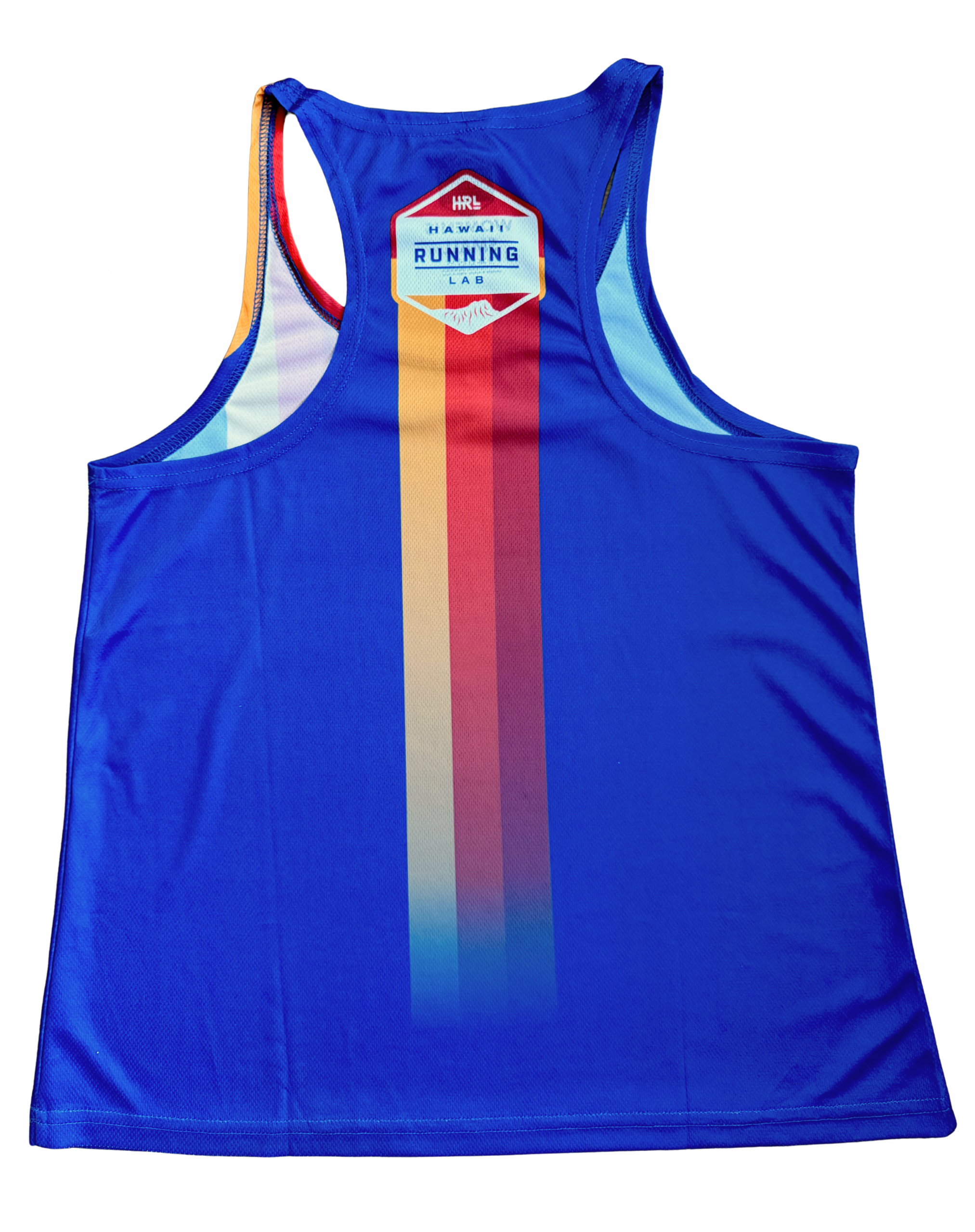 Royal blue singlet features the tricolor vertical bleed down the front and back of the top along with the hexagon logo.
